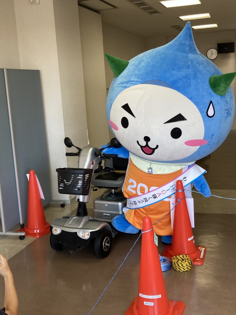 滋賀県高島市のキャラクター「たかP」にも福祉用具を体験してもらいました!