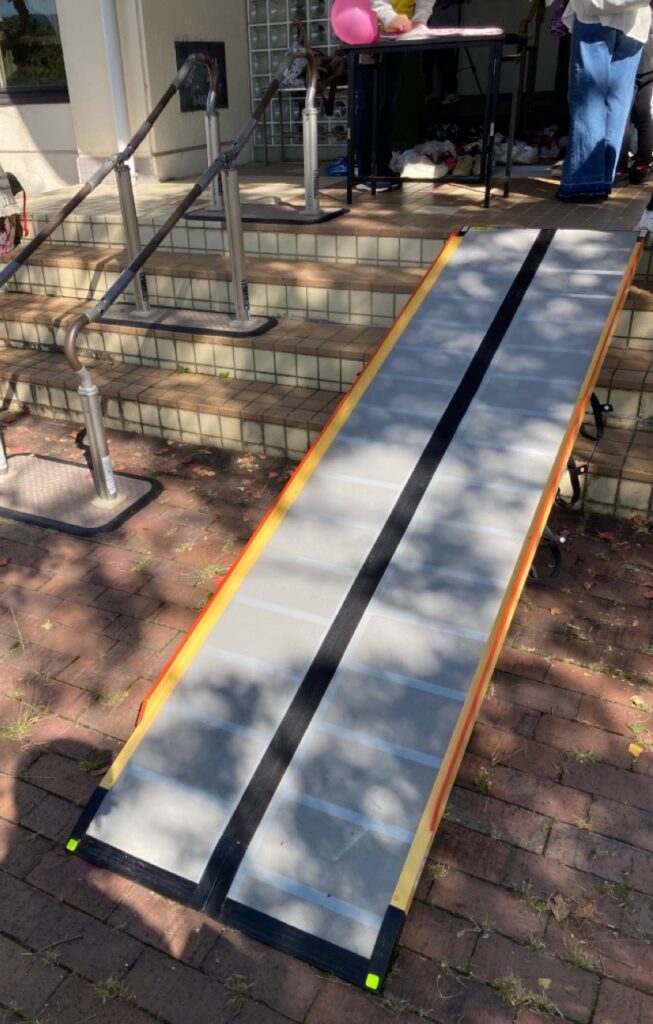 また、会場の入り口にスロープ設置の協力をさせていただきました。