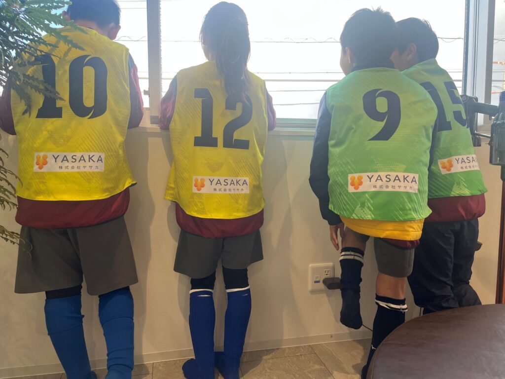 練習時に使うビブスにヤサカの社名を入れてくださいました。