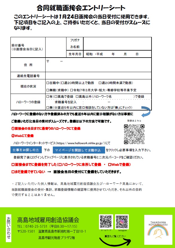 【合同就職面接会】開催のお知らせ | TAKASHIMA KOYOUSOUZOU