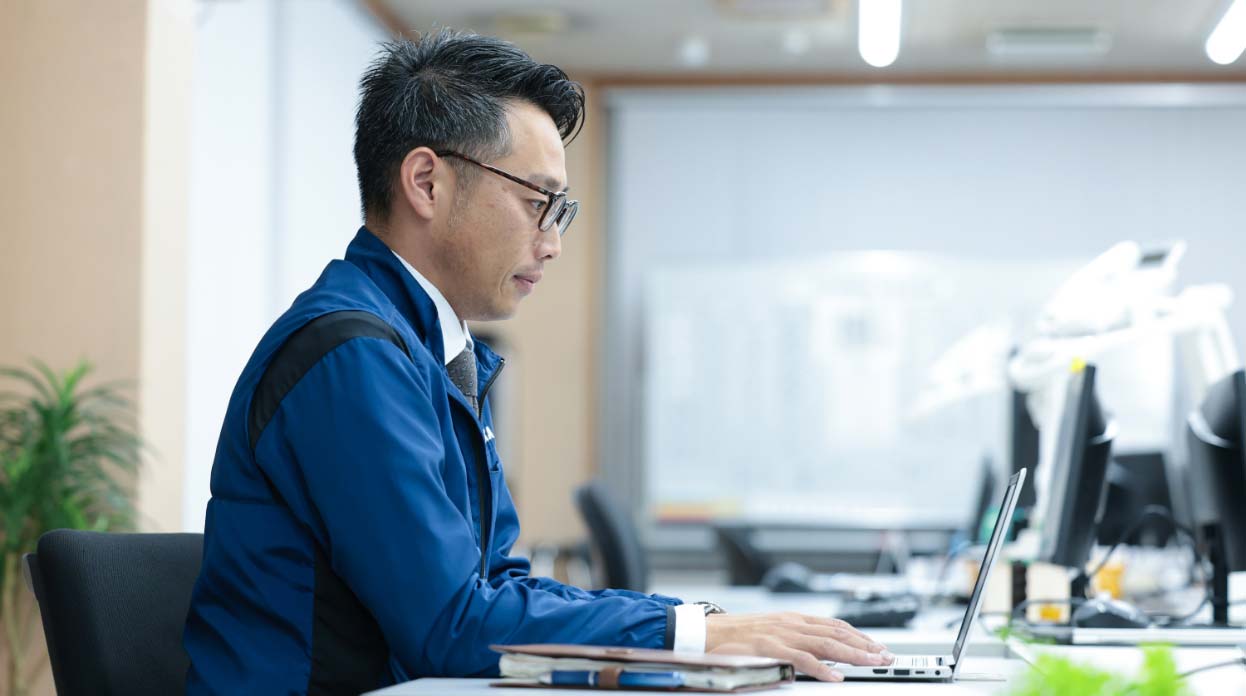 他スタッフが出勤する前の静まり返ったオフィス。それは藤田さんが最も集中できる時間帯です。多様で難度の高いケースを扱うため、見積書や提案書には精度とスピードの両方が求められます。その両立を可能にするため、藤田さんは誰よりも早くオフィスに入り、一日のタスクを“戦略的に”組み立てています。
